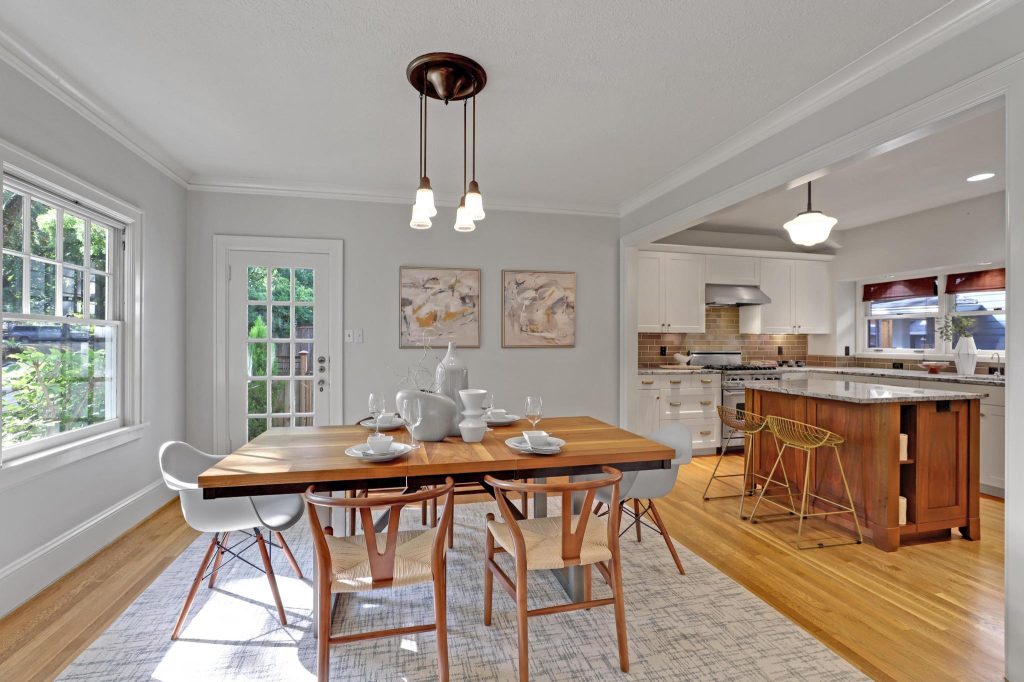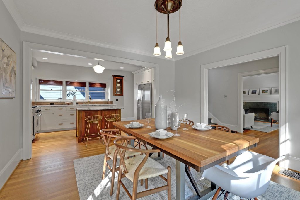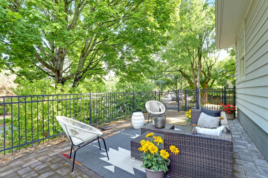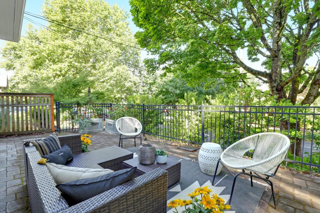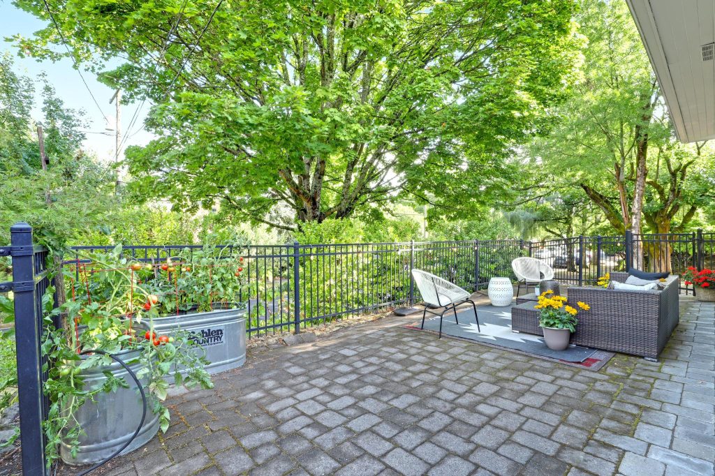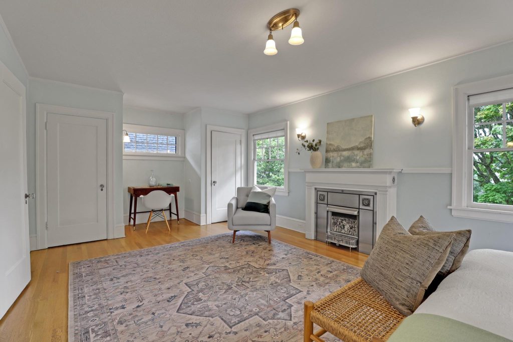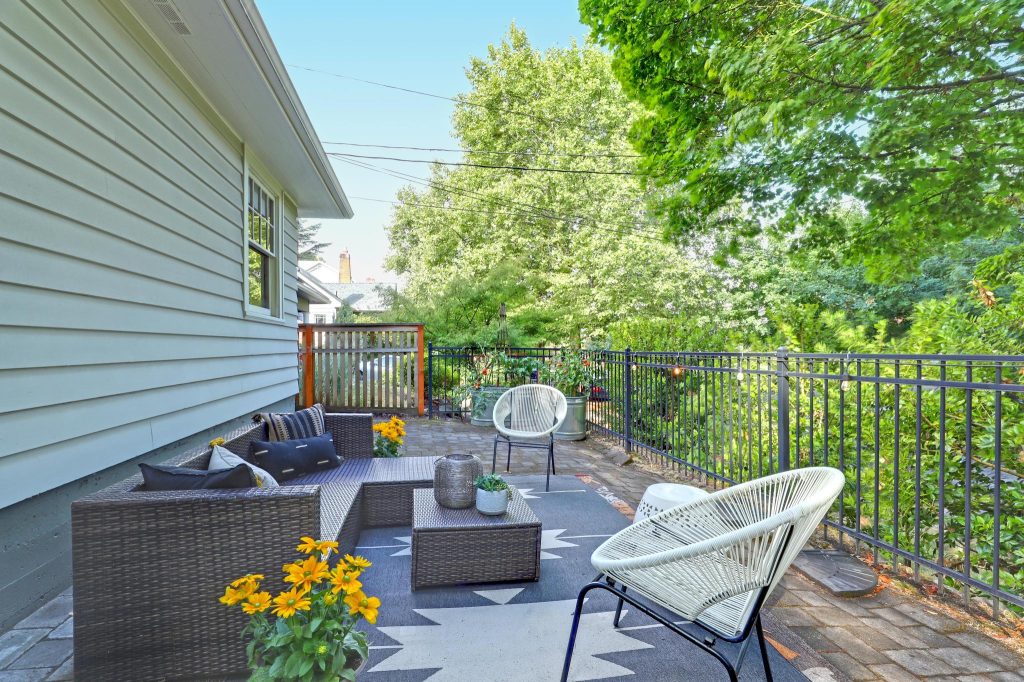 Large windows throughout provide tons of natural light all year long. Open staircase, two levels of beautiful hardwood floors and tasteful designer-kissed touches around every corner. Beautifully remodeled open kitchen and dining room create everyday togetherness and connection, along with perfect entertaining spaces. The formal living room with fireplace flows seamlessly to what is sure to be everyone's favorite room for its flexibility and fun. Perfect TV and/or family room, but can still be used as an ideal office, bedroom, or main-level guest room with wonderful ensuite bathroom. Three large bedrooms and an elegant landing upstairs. Semi-finished basement which provides perfectly livable playrooms, bonus rooms, storage, workshop, and studio space, along with a half bath. Please see impressive upgrades and improvements list for all the quality intrinsic features you cannot see in photos. Exterior boasts surprising large fenced private yard to the south and fabulous patio for BBQ's on the north. Bigger than it looks garage for parking and storage and your own private driveway.