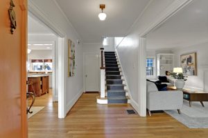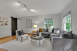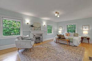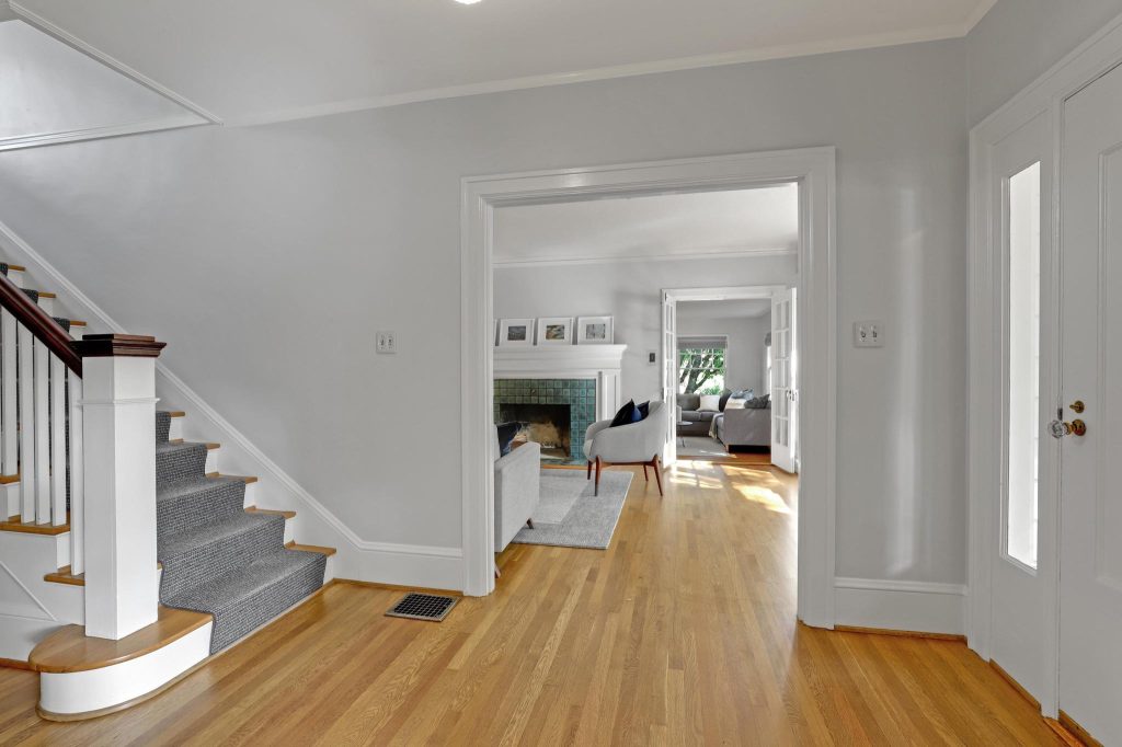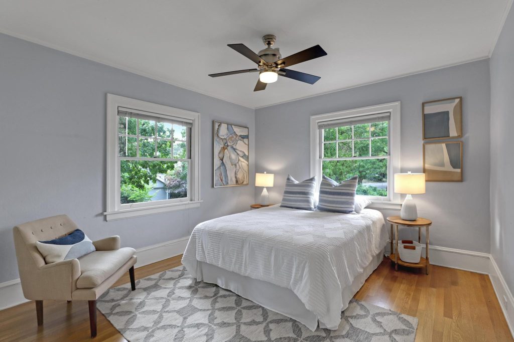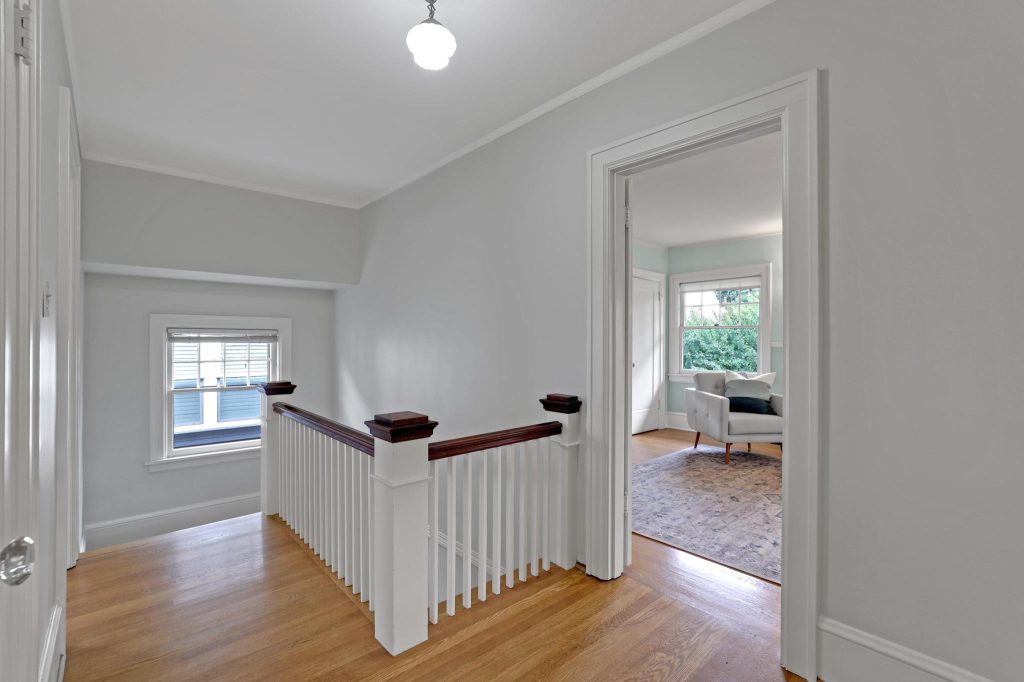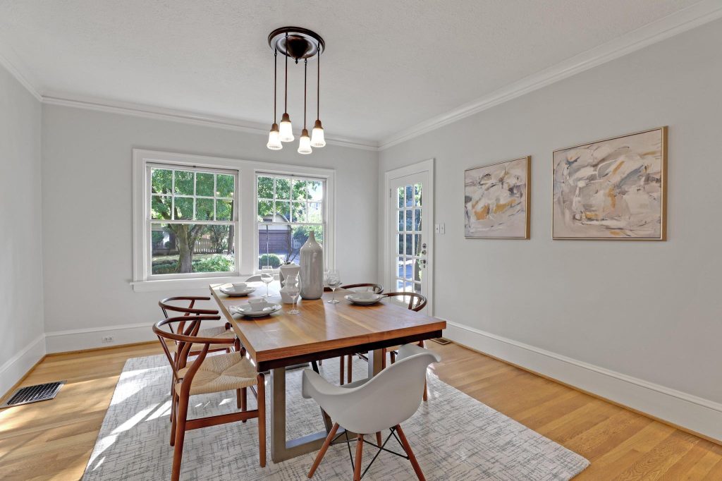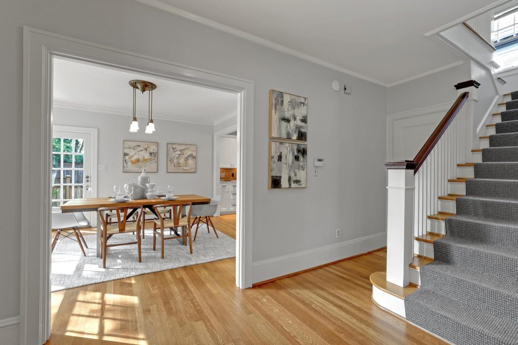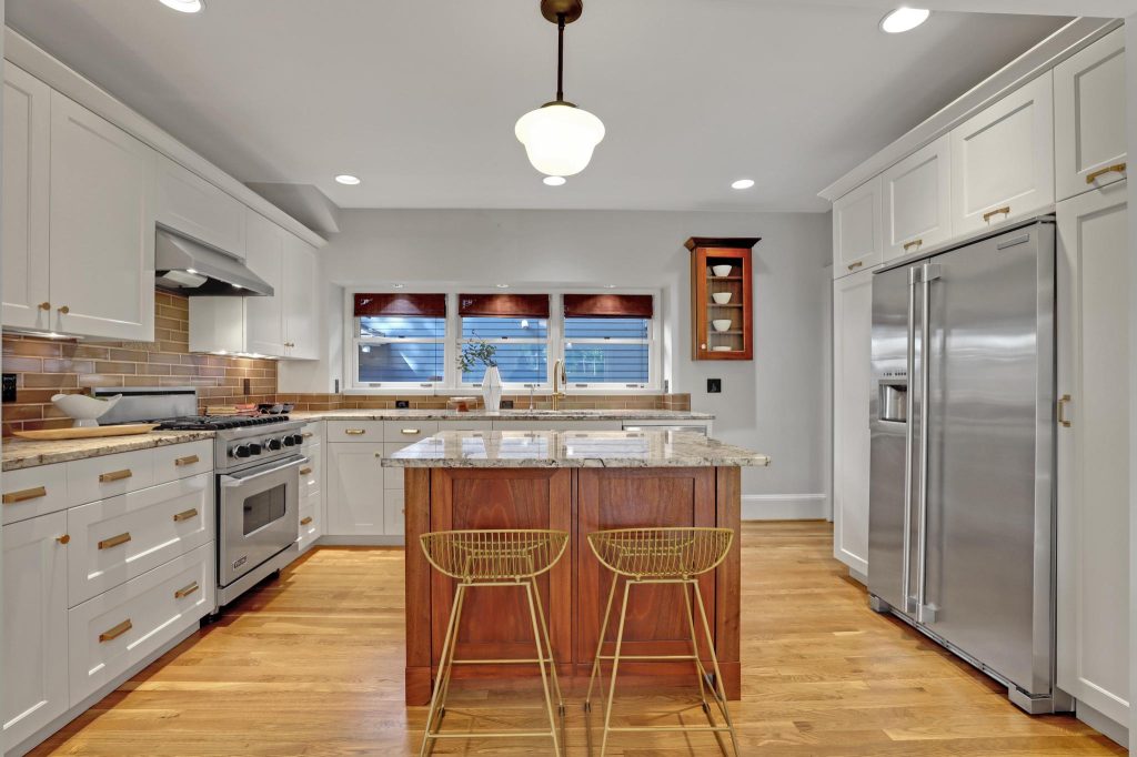 Large windows throughout provide tons of natural light all year long. Open staircase, two levels of beautiful hardwood floors and tasteful designer-kissed touches around every corner. Beautifully remodeled open kitchen and dining room create everyday togetherness and connection, along with perfect entertaining spaces. The formal living room with fireplace flows seamlessly to what is sure to be everyone's favorite room for its flexibility and fun. Perfect TV and/or family room, but can still be used as an ideal office, bedroom, or main-level guest room with wonderful ensuite bathroom. Three large bedrooms and an elegant landing upstairs. Semi-finished basement which provides perfectly livable playrooms, bonus rooms, storage, workshop, and studio space, along with a half bath. Please see impressive upgrades and improvements list for all the quality intrinsic features you cannot see in photos. Exterior boasts surprising large fenced private yard to the south and fabulous patio for BBQ's on the north. Bigger than it looks garage for parking and storage and your own private driveway.